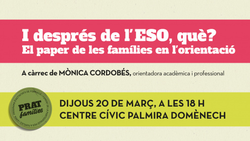Si tiene un hijo o una hija que actualmente persigue el cuarto ESO, dice esta cita en la agenda. El jueves 20 de marzo a las 6 pm, el Centro Cívico Palmira Domènech organizará la sesión informativa «Y después de ESO, ¿qué?»