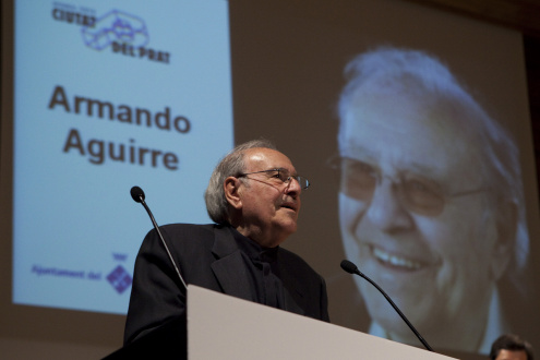 Armando Aguirre era actor en diferentes compañías de teatro y un hombre conocido en El Prat, tanto por su actividad profesional como por su participación en el campo cultural y cívico de la ciudad. Entre otros, fue el fundador y promotor del grupo de teatro L’Estaca (1974-1982), quien hizo teatro contemporáneo en español y realizó obras como «The War and the Hombre», «Panorama From the Puente» y el famoso «Tiempo de 98». A principios del siglo XXI, participó en «The Factory of Tales», una iniciativa promovida por el Consorcio de Normalización Lingüística para fomentar el uso de catalán de una manera juguetona, a través de historias y teatro.