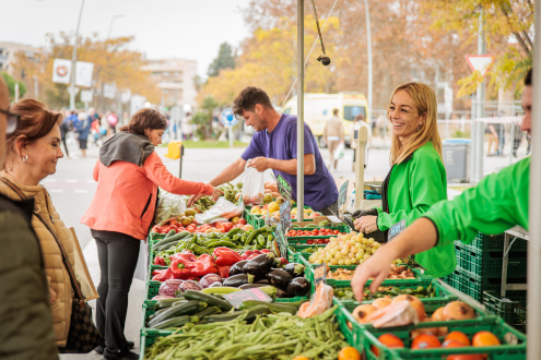 Todos los sábados por la mañana, de 8 a.m. a 2 p.m., en la Plaza de Pau Casals, los vecinos pueden acceder a una oferta de comida agrícola local, saludable y sostenible.